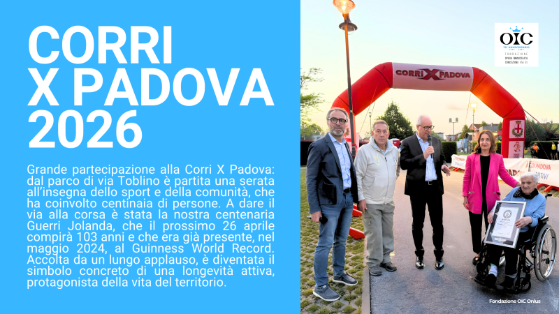 Grande partecipazione e coinvolgimento per la Corri X Padova partita nella serata di giovedì 16 aprile dal parco di via Toblino, nel quartiere Mandria, con la Fondazione Opera Immacolata Concezione Onlus protagonista di un momento di forte valore simbolico e comunitario. Un appuntamento che ha saputo unire sport, benessere e territorio, inserendosi nel calendario delle