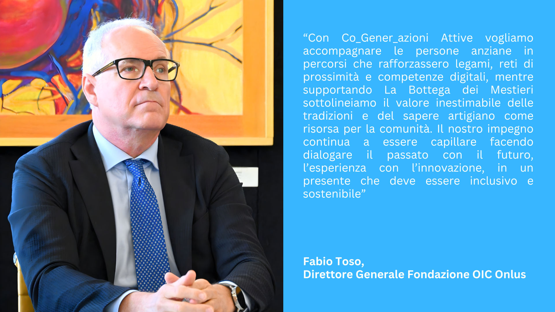 Per la Fondazione OIC, questi progetti rappresentano un passo concreto verso una società più coesa, dove il dialogo tra generazioni e la valorizzazione dei saperi – tanto digitali quanto artigianali – sono strumenti essenziali per continuare a costruire, facendo rete, comunità inclusive. L’attenzione al ruolo delle persone anziane, considerate non come soggetti fragili ma come protagonisti di nuove forme di cittadinanza attiva, si inserisce nella missione della Fondazione di promuovere la longevità come risorsa e non come limite.