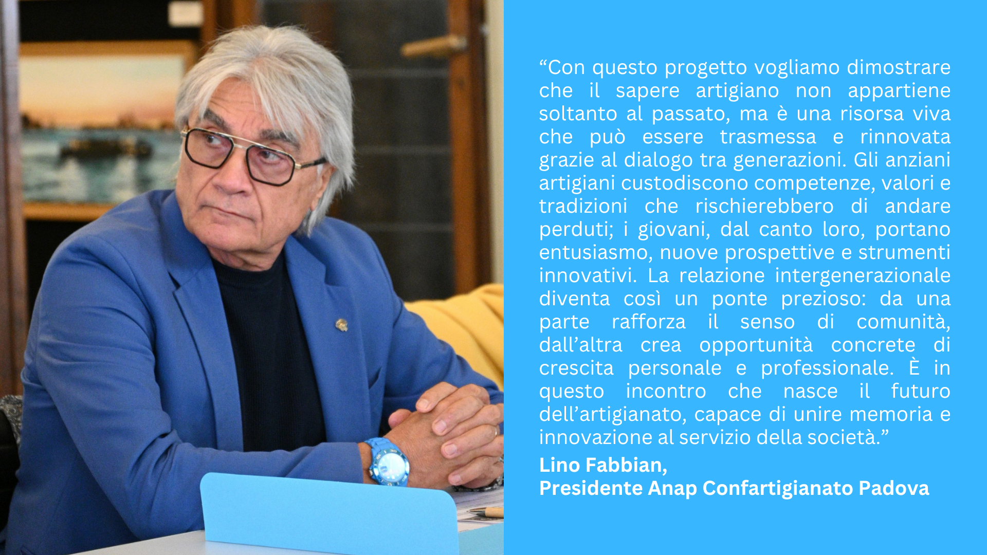 - “La Bottega dei Mestieri: Intelligenza artigiana come generatrice di valore per la comunità”, con ente capofila ANCOS Comitato Provinciale di Padova.