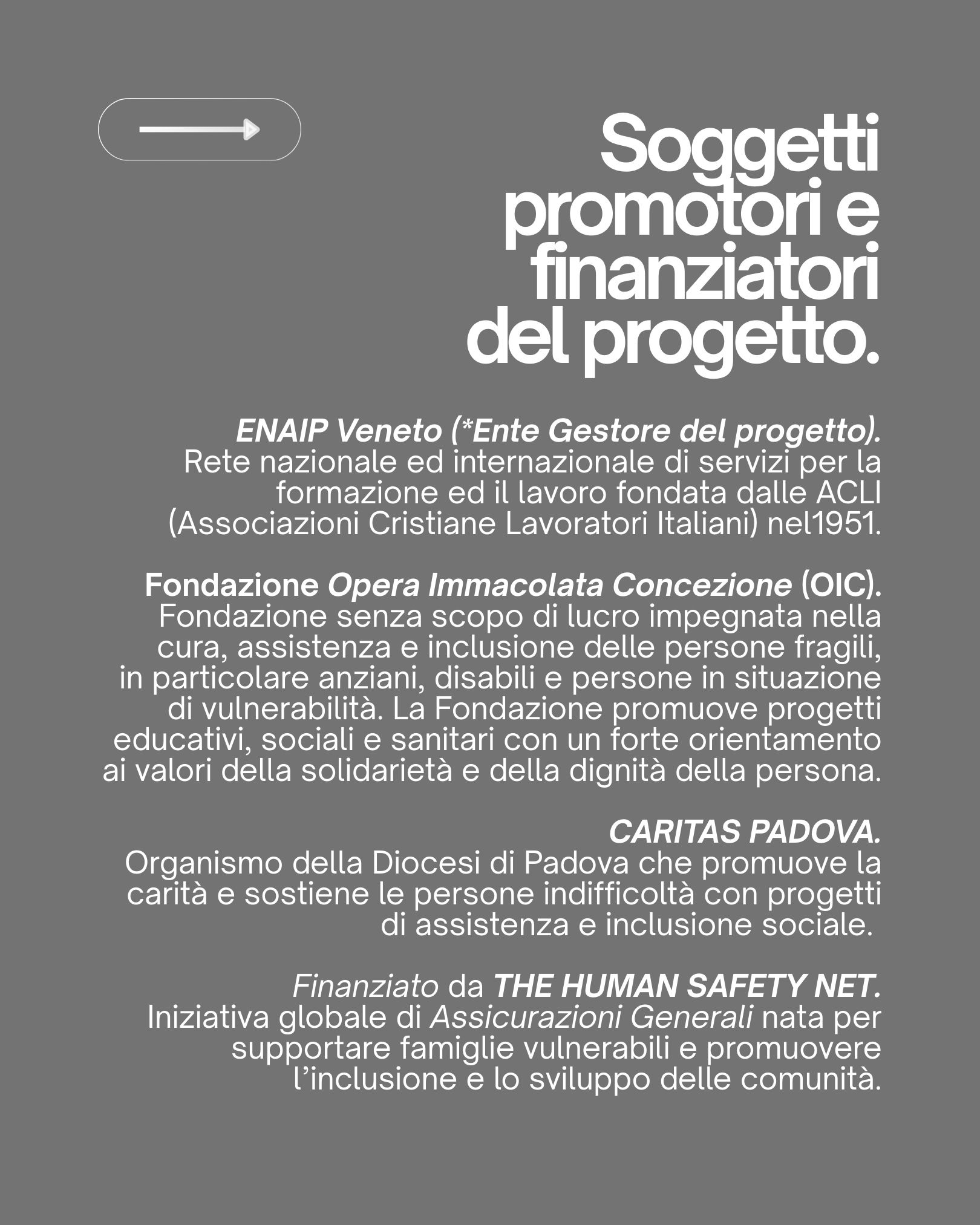 La Fondazione Opera Immacolata Concezione Onlus, ENAIP Veneto e Caritas Padova – con il sostegno di The Human Safety Net, iniziativa globale di Assicurazioni Generali – hanno presentato un progetto che unisce formazione, lavoro e inclusione sociale, rivolto a persone in situazione di fragilità, migranti e rifugiati.