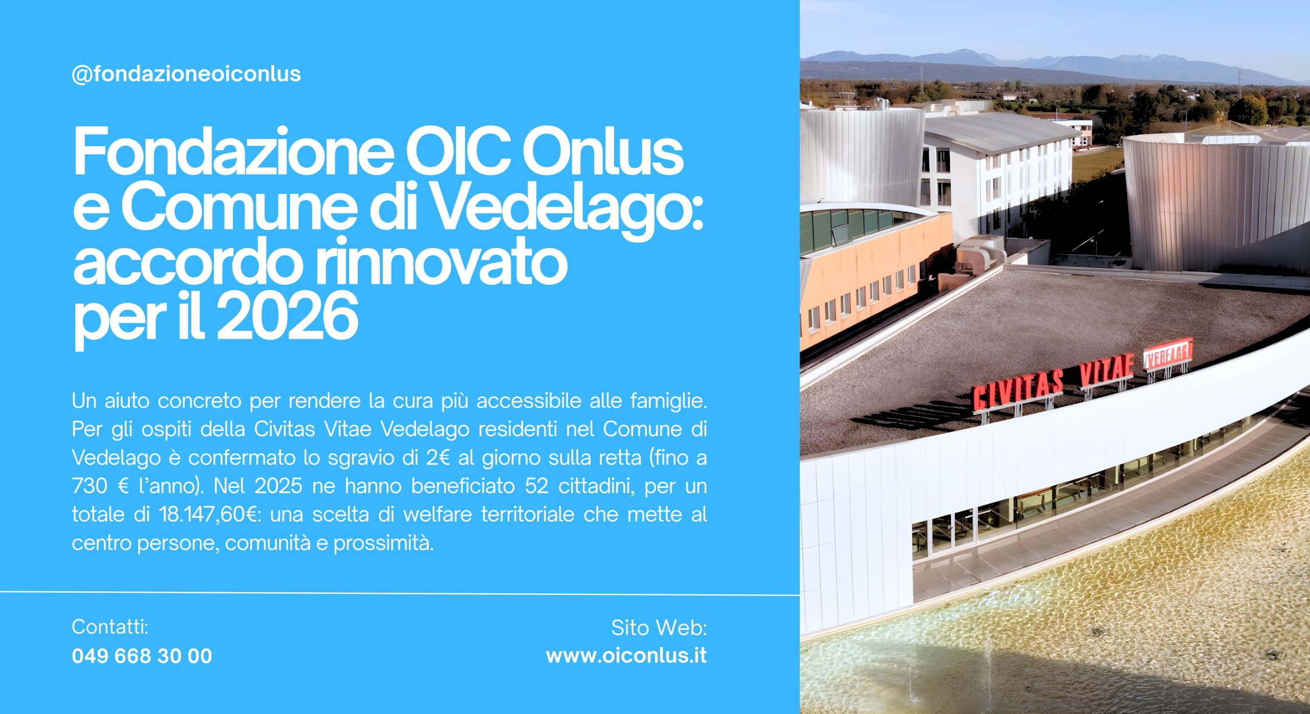 Rinnovato per il 2026 l’accordo tra Fondazione OIC e Comune di Vedelago. Un sostegno concreto alle famiglie e un impegno condiviso per un welfare territoriale più accessibileRinnovato per il 2026 l’accordo tra Fondazione OIC e Comune di Vedelago.