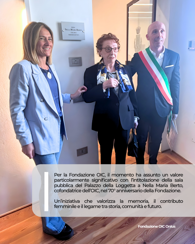 In particolare, per la Fondazione OIC, il momento ha assunto un significato profondamente identitario con l’intitolazione della sala pubblica al secondo piano del Palazzo della Loggetta a Nella Maria Berto, una delle figure più significative nella nascita dell’Opera.