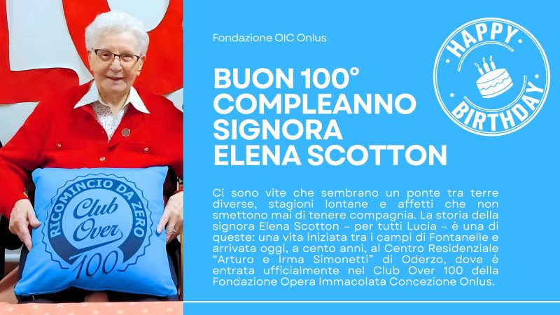 Ci sono vite che sembrano un ponte tra terre diverse, stagioni lontane e affetti che non smettono mai di tenere compagnia. La storia della signora Elena Scotton – per tutti Lucia – è una di queste: una vita iniziata tra i campi di Fontanelle e arrivata oggi, a cento anni, al Centro Residenziale “Arturo e